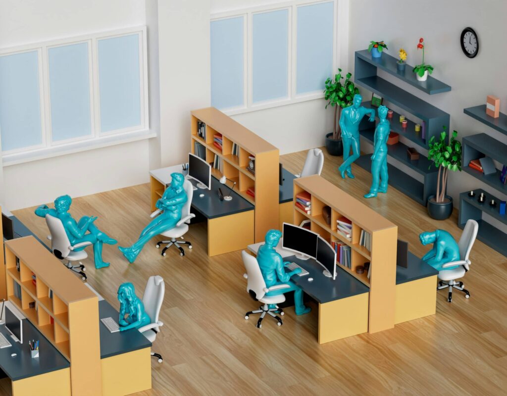 L’idée derrière l’open space est que la suppression des cloisons et des bureaux individuels crée un environnement de travail plus ouvert et flexible, permettant aux employés de travailler de manière plus collaborative et plus efficace. Cependant, cette organisation de travail a également ses inconvénients, tels que le manque d’intimité, la distraction et le bruit, ce qui peut nuire à la productivité et au bien-être des employés.